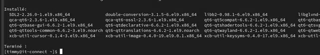 La première étape consiste à installer les dépendances nécessaires au fonctionnement de Veyon, à savoir le dépôt EPEL, qui fournit des paquets supplémentaires non disponibles dans les dépôts standards, ainsi que la bibliothèque graphique Qt6.