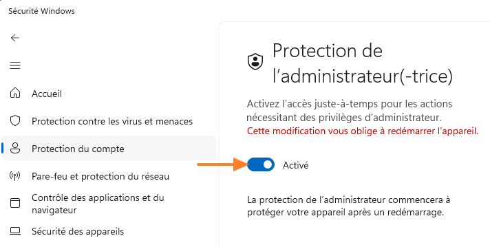 Note : pour rappel, la Protection de l'administrateur est disponible dans la version Insider Preview Build 27718 (Canary Channel) de Windows 11, ou une version supérieure.