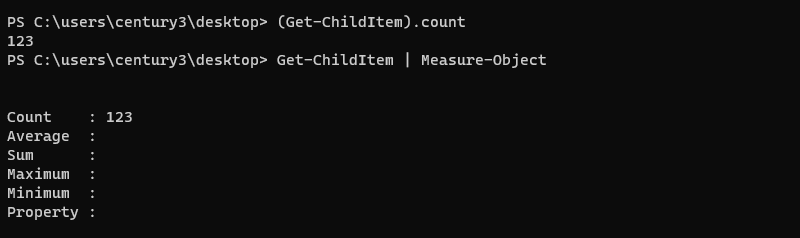 Nous devons compter le nombre de fichiers sur le Bureau de la session. Il y en a suffisamment pour que ce soit pénible de compter manuellement. Ahah. Tant mieux, car notre objectif est d'utiliser PowerShell ! Nous pouvons obtenir l'information de plusieurs façons, dont celles-ci :