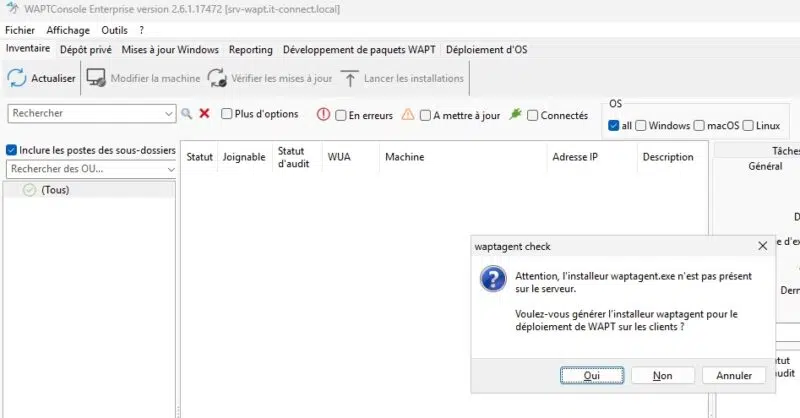 Dans le cadre de cette démonstration, l'agent WAPT est installé sur Windows, mais sachez que Linux et macOS sont pris en charge.