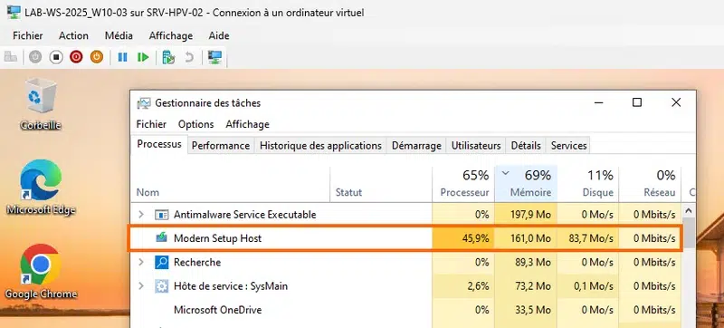 Assez rapidement, un processus lié à la mise à niveau est identifié sur la machine cible.