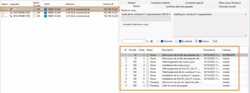 Note : l'audit est un excellent moyen de cibler par la suite uniquement les postes éligibles à la mise à niveau. Sinon, vous risquez de pousser la mise à niveau sur des machines non compatibles, ce qui entraînera un échec, et au-delà de ça, une consommation inutile de la bande-passante réseau.
