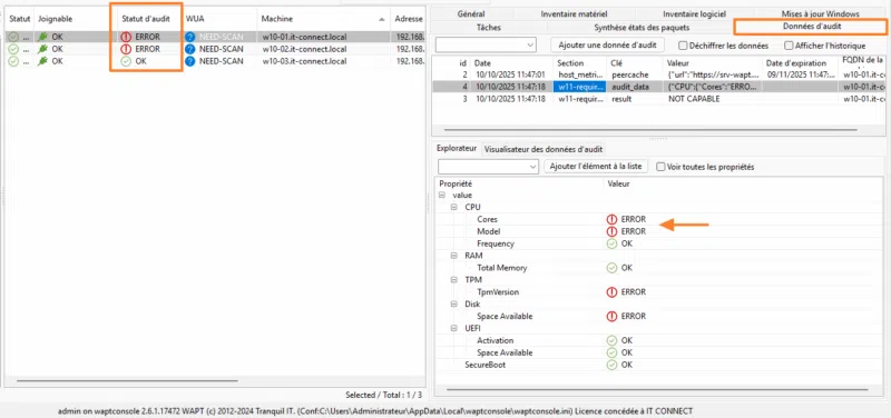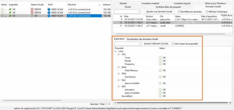tis-windows11-requirements. Il présente l'avantage de centraliser les résultats dans la console WAPT, avec le détail des tests.