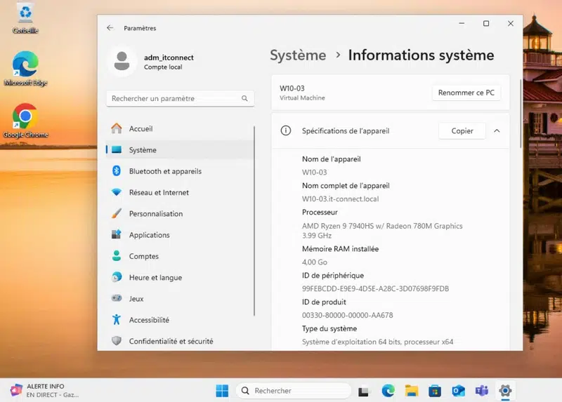 Grâce à WAPT, la machine est correctement mise à niveau de Windows 10 à Windows 11, après redémarrage.