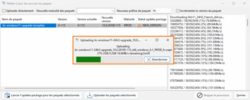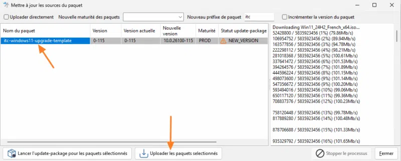 Sélectionnez bien le paquet et cliquez sur "Uploader les paquets sélectionnés".