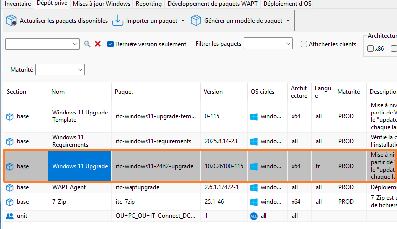 IV. Upgrade Windows 10 vers Windows 11 via WAPT
