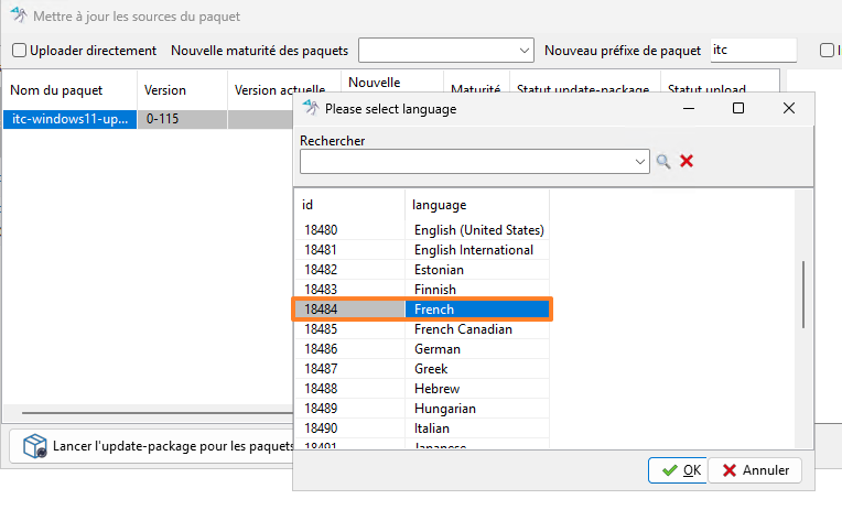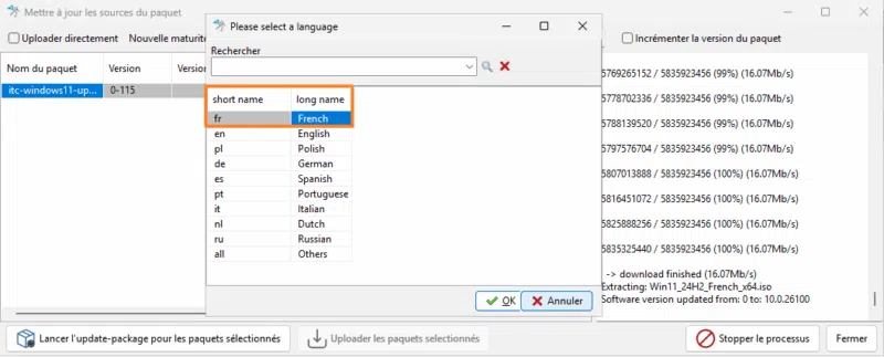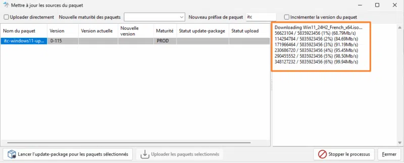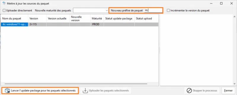 Vous devez spécifier le préfixe du futur paquet. En effet, à la fin de cette opération, un nouveau paquet sera visible dans votre dépôt privé. Cliquez ensuite sur le bouton "Lancer l'update-package pour les paquets sélectionnés".