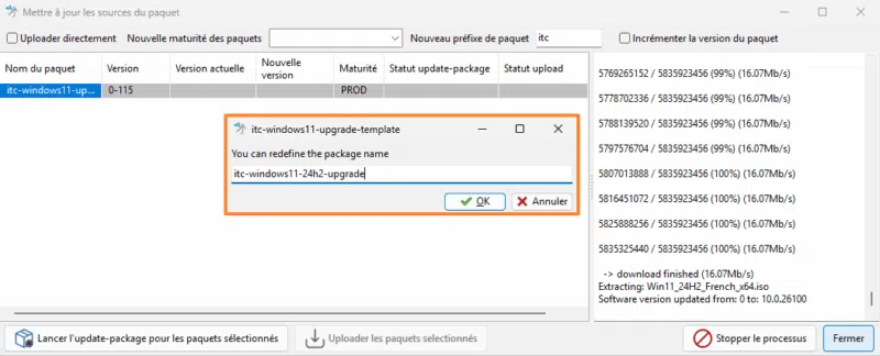 Puis, un nom de paquet personnalisé doit être précisé. Ici, je retiens ce nom : itc-windows11-24h2-upgrade.