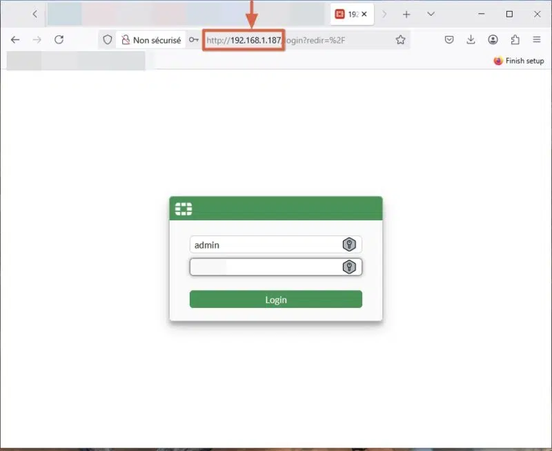 Ensuite, il suffit d'entrer cette adresse IP dans la barre d'adresse de votre navigateur. Vous serez alors invité à saisir le nom d'utilisateur et le mot de passe que vous avez configuré.