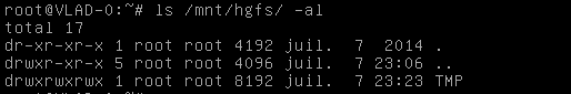 Une fois le partage terminé, on se rendra sur notre machine virtuelle. Par défaut, les partages sont déjà montés dans "/mnt/hgfs" :