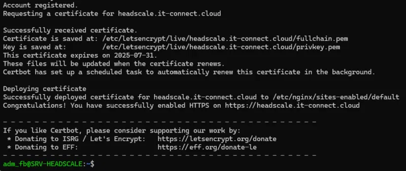 sudo certbot --nginx -d headscale.it-connect.cloud