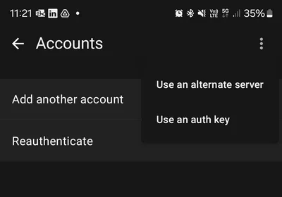 L'application Tailscale officielle doit être installée. Il convient d'accéder à la partie "Accounts" pour sélectionner l'option nommée "Usage an alternate server" à partir du menu (trois points verticaux).