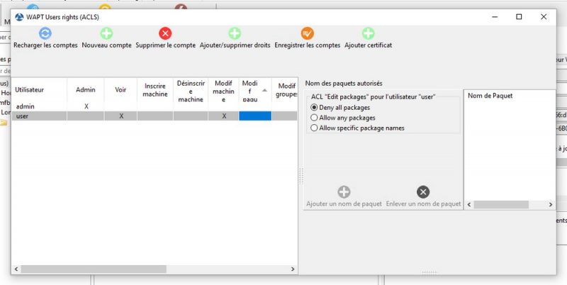 La solution WAPT a pour objectif de gérer le cycle de vie des logiciels sur votre parc informatique, de l'installation, à la configuration, aux mises à jour et jusqu'à la désinstallation. Une console de gestion centralisée permet de piloter le déploiement des paquets et de prendre le contrôle également des mises à jour Windows. En complément, un store d'entreprise permet aux utilisateurs de gagner en autonomie dans l'installation et la mise à jour des logiciels. Cette gestion des logiciels est accompagnée par une fonctionnalité d'inventaire qui va remonter les machines gérées avec des informations sur le matériel et les logiciels.