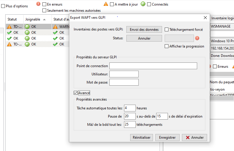 En complément, la solution de gestion de parc informatique reconnue GLPI va pouvoir s'interconnecter avec WAPT, dans un sens unique : de WAPT vers GLPI. Concrètement, qu'est-ce que cela signifie ? Vous installez le plugin "Fusion Inventory" sur votre GLPI et ensuite vos machines équipées de l'agent WAPT vont pouvoir remonter des informations sur votre serveur WAPT, ce dernier va ensuite synchroniser les données vers GLPI. Ainsi, il n'est plus nécessaire d'installer l'agent Fusion Inventory sur vos postes clients.