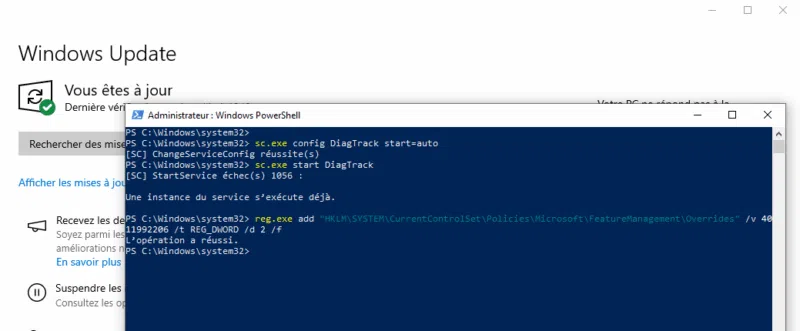 Tout d'abord, assurez-vous que le service DiagTrack (Connected User Experiences and Telemetry) est actif :