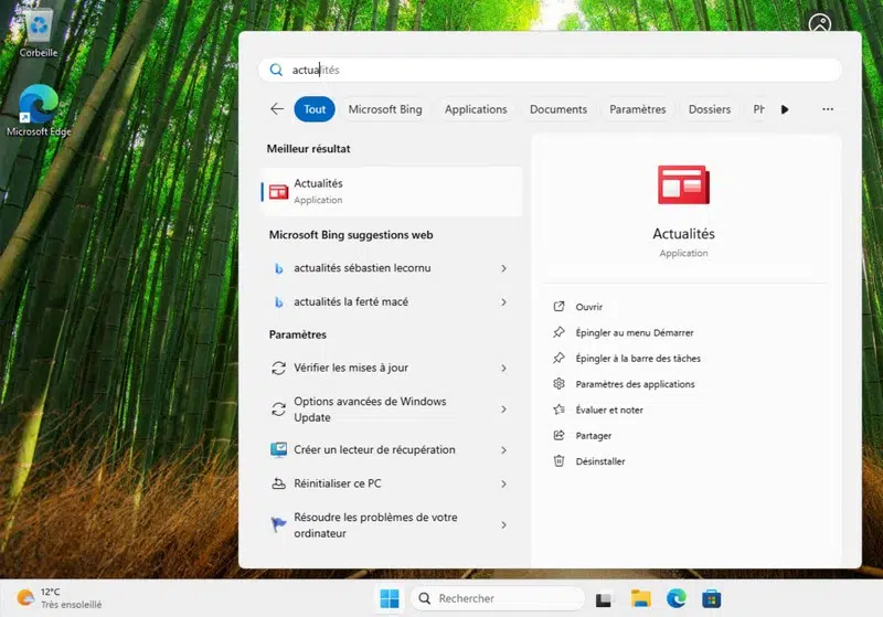 Avant l'application de cette stratégie, ma machine disposait bien de certaines applications ciblées comme Clipchamp et Actualités (Microsoft News).