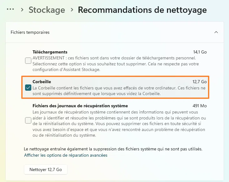 Mais perso je déteste la version graphique de nettoyage Win11… perso exécuter -> cleanmgr et ça fait le taff pas besoin d’outils tierces