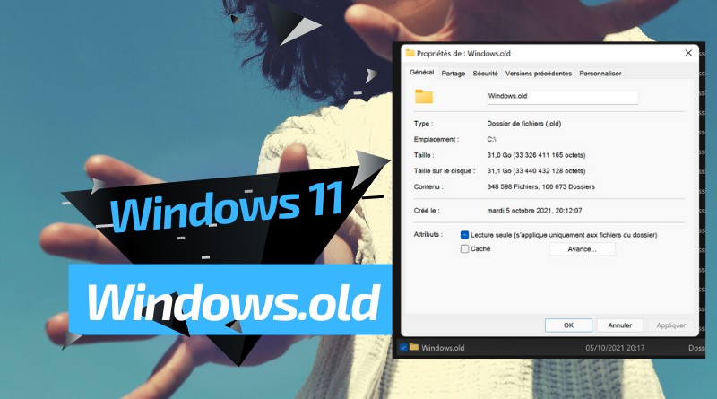 Si vous rencontrez des difficultés sur Windows 11 et que vous souhaitez retourner sur Windows 10, ce dossier permet au système de faire machine arrière. Au bout de quelques jours, si tout semble stable sur votre machine, vous pouvez vous en débarrasser pour libérer de l'espace disque (cette décision vous appartient). Sur ma machine, après la mise à niveau le dossier faisait 31 Go, ce qui n'est pas négligeable.