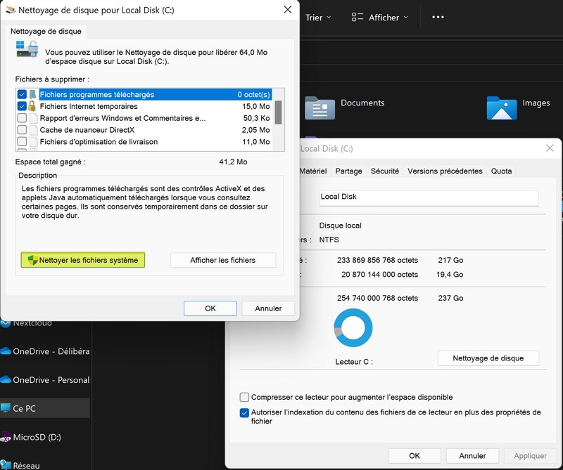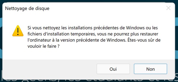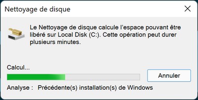 Il ne reste plus qu'à patienter pendant le nettoyage opéré par Windows 11. Vous voilà débarrassé du dossier "Windows.old" et votre disque va pouvoir respirer un peu (en tout cas, le mien il a apprécié).
