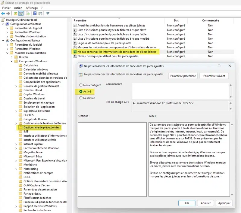 Pour le moment, Microsoft ne s'est pas exprimé à ce sujet. Il est préférable de ne pas altérer la configuration de Windows au point de diminuer le niveau de sécurité. Privilégiez le déblocage de fichiers ou la configuration de la zone intranet, plutôt que le paramètre de stratégie évoqué ci-dessus.