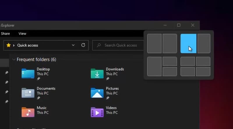 En positionnant la souris sur le bouton "Agrandir" d'une fenêtre, un nouveau menu apparaît pour permettre à l'utilisateur de positionner la fenêtre actuelle à un endroit spécifique de l'écran. Pour voir la fonctionnalité en action, je vous propose de regarder la vidéo de Neowin à ce sujet :