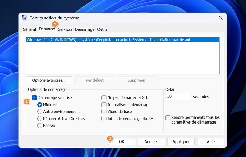 Attention : cette option reste active tant qu’elle n’est pas désactivée manuellement. Pour revenir au démarrage normal, retournez dans l'outil msconfig et décochez l’option "Démarrage sécurisé". Ainsi, Windows 11 va démarrer normalement la prochaine fois.