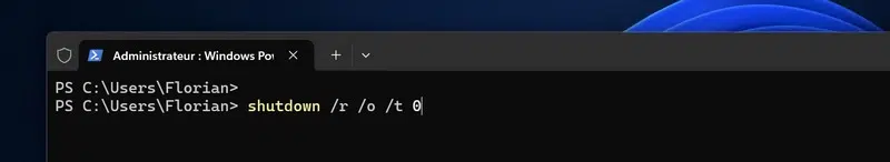 Si vraiment, vous ne jurez que par la ligne de commande, vous pouvez aussi basculer en mode de redémarrage avancé via une commande ! Ouvrez Windows Terminal ou l'Invite de commande afin de lancer la commande suivante :