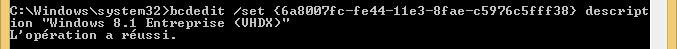 A la suite de cette opération, l'entrée sera renommée dans le menu de démarrage. Si vous le souhaitez, vous pouvez vérifier cela en recommençant la commande "bcdedit /v".