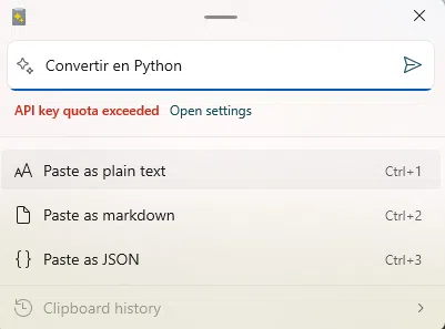 Au-delà de cette capacité de conversion, cet outil peut être utilisé pour résumer ou traduire le texte présent dans le presse-papiers. De plus, il est capable de réécrire le contenu en l'adaptant dans un autre style d'écriture, par exemple. Malheureusement, ces fonctionnalités avancées basées sur prompt pour solliciter l'IA sont payantes : vous devez disposer d'un abonnement pour indiquer vos clés d'API de chez OpenAI (ChatGPT) dans les paramètres de PowerToys (ceci va consommer vos jetons). D'ailleurs, c'est surprenant que ce ne soit pas plutôt associé à un abonnement Microsoft Copilot.