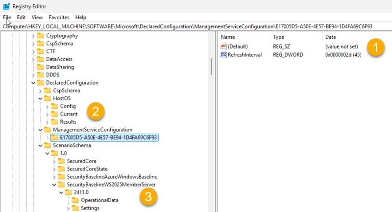- Vérifier la configuration brute – La première étape consiste à vérifier la configuration « brute », stockée dans HKEY_LOCAL_MACHINESOFTWAREMicrosoftDeclaredConfigurationRaw. Ces données brutes reflètent les paramètres d’origine, non traités, tels que définis dans votre document de configuration.