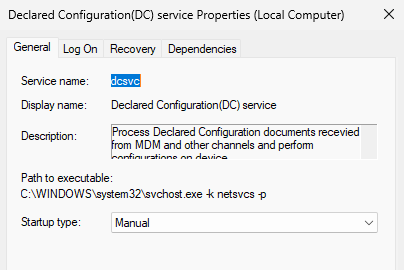 Le service de configuration déclarée (dcscvc) joue un rôle essentiel dans l'application des politiques. Ce service traite les configurations et garantit la conformité en :
