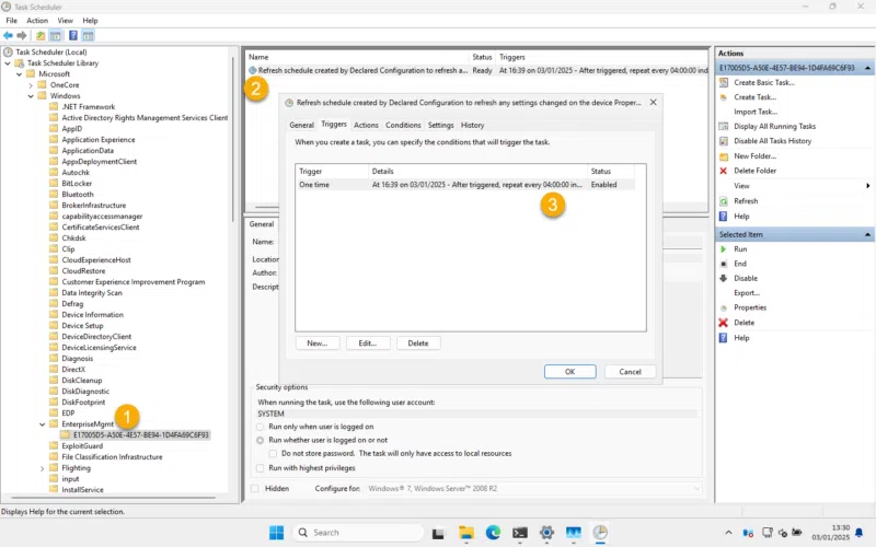 - 2 - Nous retrouvons la tâche planifiée créée par OSConfig