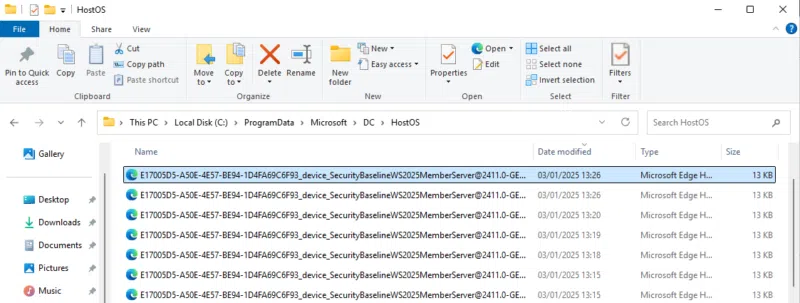Quand une nouvelle configuration ou une nouvelle ligne de base est appliquée à un système, un fichier au format JSON est créé dans le dossier suivant : C:\programaDataMicrosoft\DC\HostOS.