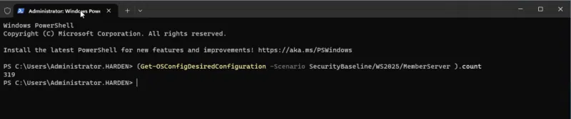 (Get-OSConfigDesiredConfiguration -Scenario SecurityBaseline/WS2025/MemberServer).count