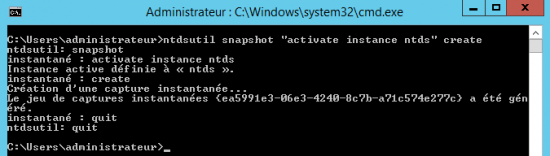 On ajoute uniquement "quit quit" à la fin pour que le programme ntdsutil soit quitté automatiquement.