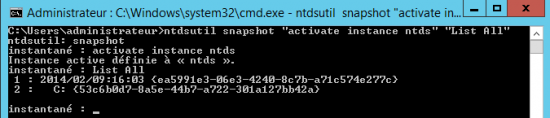 Note : Si le cliché instantané correspond à un fichier ntds.dit d'un domaine qui n'existe plus, ajoutez l'option "/allowNonAdminAccess".