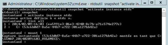 De nombreux logiciels utilisent l'API VSS pour effectuer ce type de tâche, dans le cadre de ce tutoriel, nous utiliserons l'utilitaire Microsoft nommé "ntdsutil" qui s'utilise en ligne de commande. Enfin, nous verrons comment lire une sauvegarde cela par l'utilisation de "dsamain.exe".