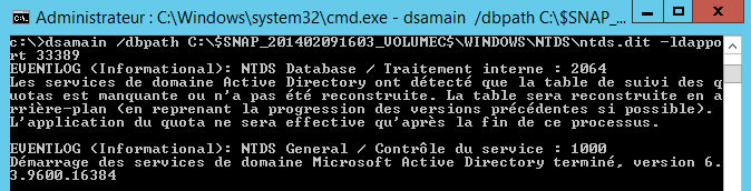 dsamain /dbpath C:\$SNAP_201402091603_VOLUMEC$\WINDOWS\NTDS\ntds.dit -ldapPort 33389