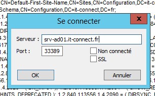 Pour ceux qui souhaitent, vous pouvez aussi utiliser ldp.exe pour effectuer une connexion.