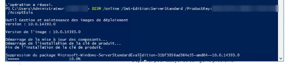 S'il vous est bien proposé de basculer vers la version Standard, vous pourrez passer de Standard Evaluation à Standard avec la commande suivante : :