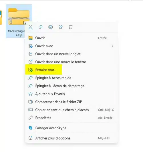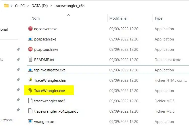 Suite au téléchargement, vous devez disposer d'un fichier zip nommé « tracewrangler_x64.zip » (pour la version 64 bits).