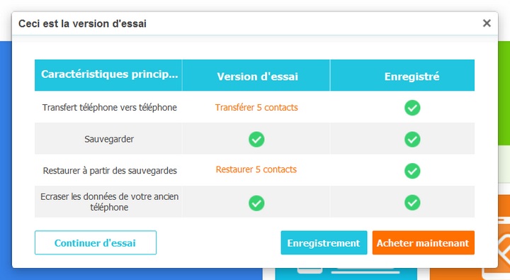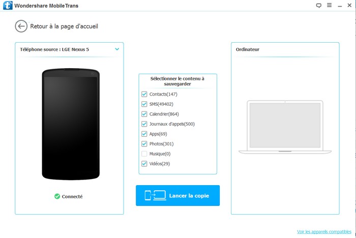 Wondershare MobileTrans est un logiciel payant qui a pour objectif de vous faciliter la vie lorsque vous souhaitez migrer d'un téléphone à un autre, notamment pour le transfert de vos données personnelles. Par ailleurs, cette application peut être utilisée pour sauvegarder ses données.