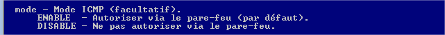 Il faudra utiliser « ENABLE » pour autoriser les pings et « DISABLE » pour refuser les pings.