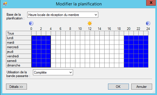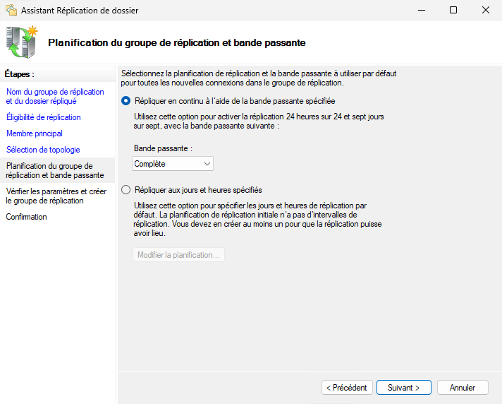 La réplication peut être effectuée en continu, ou uniquement selon certains créneaux horaires. Là encore, c'est une question de besoin. Mais pour répartir la charge entre deux serveurs de fichiers en ligne, il est préférable d'opter pour la réplication en continu. Vous pouvez éventuellement limiter la bande passante.