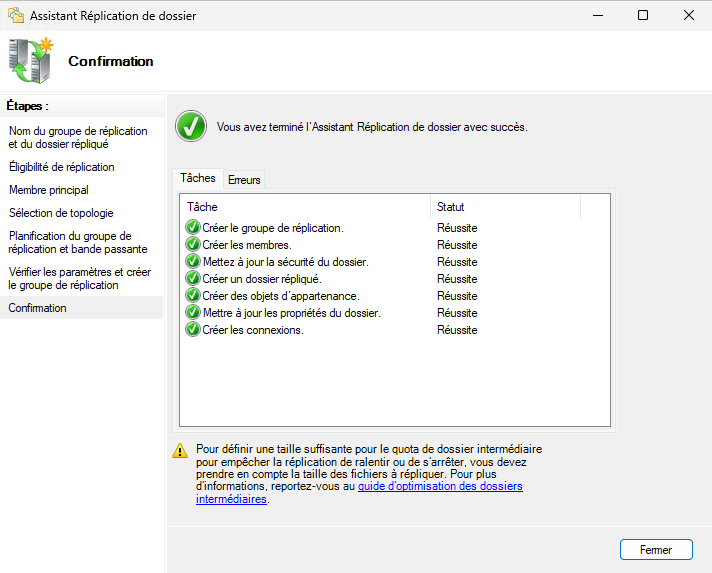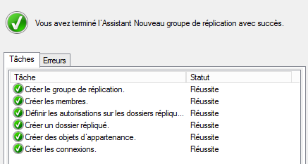 Puis, votre groupe de réplication DFSR sera visible dans la console DFS :