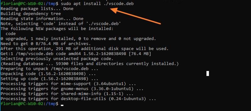 Vous allez obtenir un fichier avec un "nom bizarre". On va le renommer en "vscode.deb" :