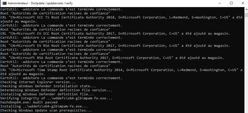 Là encore, patientez pendant l'installation... Le logiciel va s'appuyer sur le service Windows Update de votre machine pour voir quelles sont les mises à jour manquantes. Si les mises à jour sont dans vos sources hors ligne, elles seront installées.