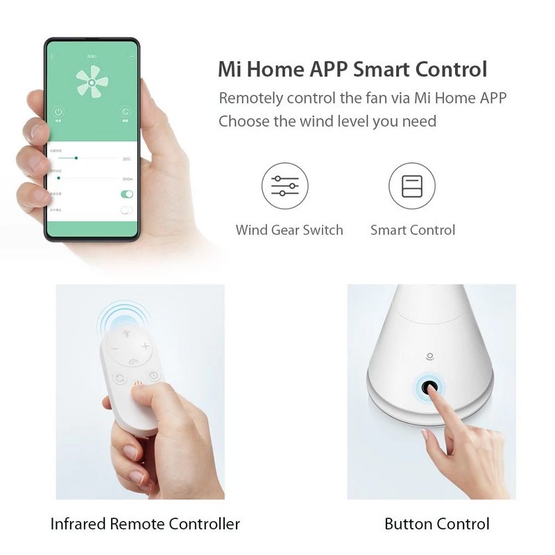 Ce ventilateur sans pales et connecté s'intègre parfaitement à l'écosystème Xiaomi puisqu'il est pilotable à partir de l'application Mi Home afin de le contrôler à distance. En plus, il est plutôt design ce ventilo !