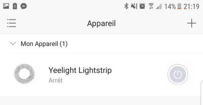 Une fois le scan terminé, votre bandeau Led doit apparaître sous la section "Mes Yeelight". Par exemple :