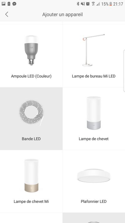 Pour la configuration de la bande Led, nous allons utiliser l'application Yeelight disponible sur le Play Store. On peut aussi associer la bande Led avec l'application Mi Home mais je n'ai pas réussi à activer le mode réseau local, je suis donc repassé sur l'app Yeelight officielle.